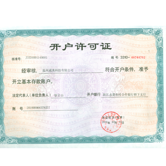 榮譽名稱:開戶許可證